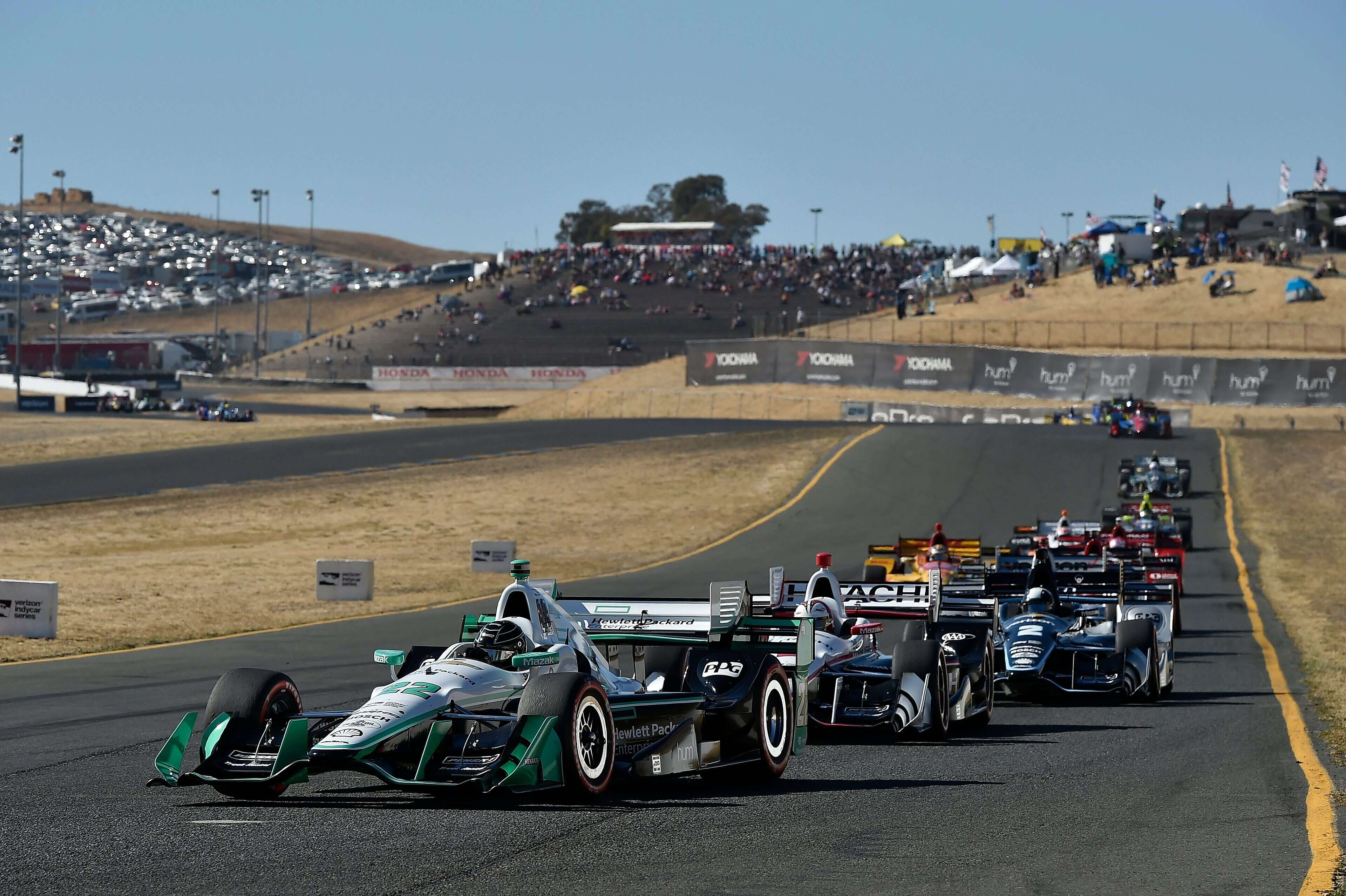 索诺玛赛道坐落在加州葡萄酒之乡的连绵起伏的山丘中,赛道全长 1.99 英里,赛道内有 12 个急转弯,还有四分之一英里的直线加速赛道。作为 NASCAR 赛道上仅有的两条公路赛道之一,赛车面临着在普通比赛中无法遇到的独特挑战。即高海拔、下坡、视线受阻和右转。自 2015 年以来,这条赛道一直是 IndyCar 赛季决赛的举办地。